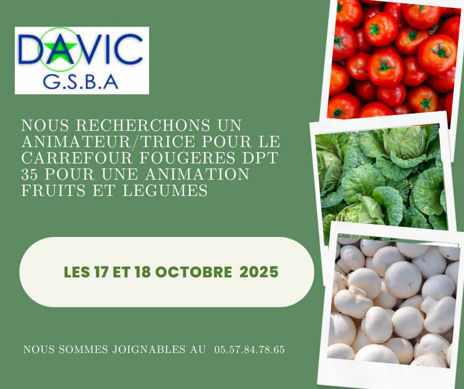 Nous recherchons un animateur / trice dept 35 pour une animation fruits et légumes pour le Carrefour Fougères