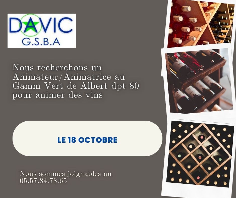 Nous recherchons un animateur / trice pour une animation vin au Gamm Vert de Albert dept 80